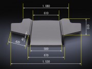 リアディフューザー タイプ1モデルより、センターダクトを高めにセッティングし、後方に排出するエアー量を増やすことでダウンフォース量を更に増加させることができました。サイド部分の幅もできる限り大きく形状の方を造形することで、ダウンフォース量を更に増加させることができました。